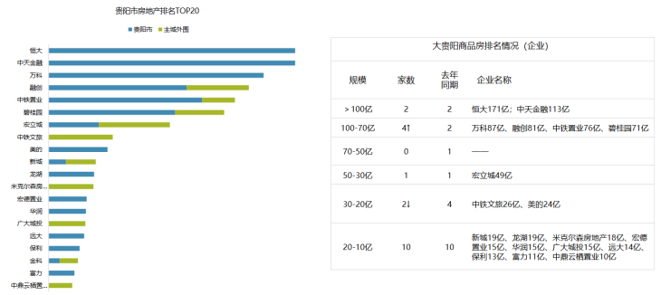 从成交项目及房企来看,中天、恒大双破百亿,前6企业与后续竞争拉大,商品房项目成交top3分别为中天吾乡、贵阳融创城、碧桂园西南上城。可以看到,去年贵阳市场以小体量项目为主,无大盘独大的局面。