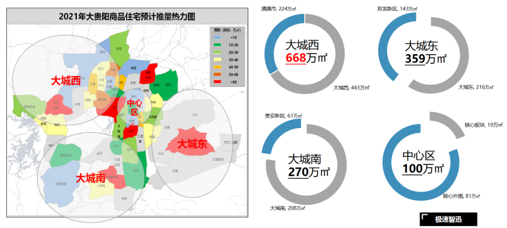 区域方面,大贵阳形成三大竞争区域格局,货量重仓集中在大城西区域;
