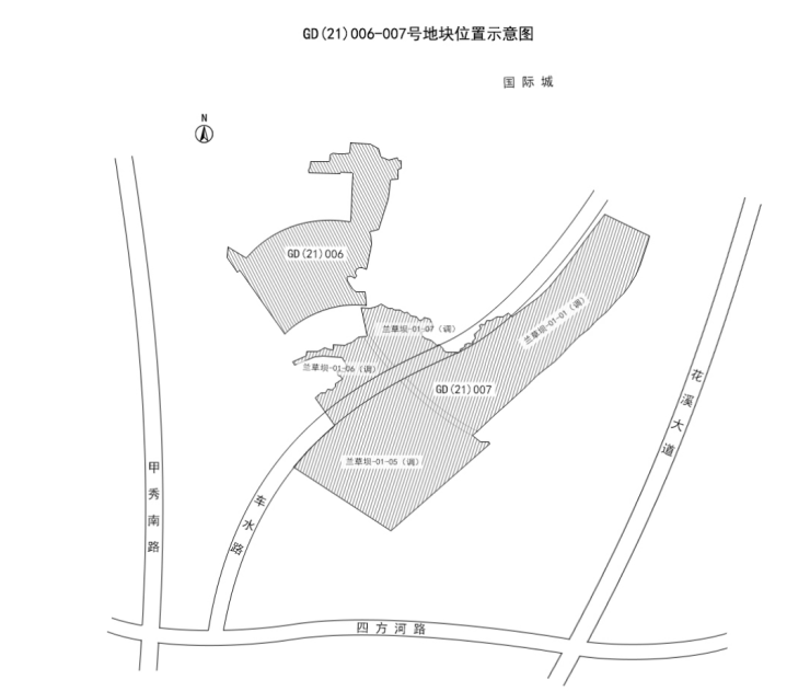 GD(21)006-007号地块为南明区车水路周边棚户区改造项目用地。其中,GD(21)006号地块位于南明区后巢乡上下坝区域,北抵南郊公园,东靠贵昆铁路,南邻灯笼坡,西接南郊水厂。总用地面积 93749 平方米,计容用地面积 83802 平方米。实际出让面积 83802 ㎡,计容建筑面积 293307平方米,规划住宅及配套建筑面积占总计容建筑面积的比例≤90%,商业建筑面积占总计容面积的比例≤10%。