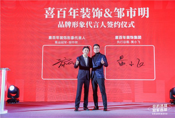 奥运冠军邹市明官宣代言喜百年装饰,助力打造冠军品质家装!