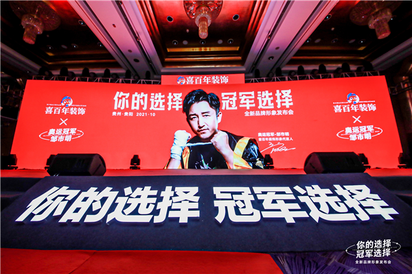 10月22日下午三点,贵州喜百年装饰集团携手邹市明在贵阳喜来登酒店三楼大宴会厅举办“你的选择·冠军选择”全新代言人签约发布会,正式签约世界拳王邹市明为形象代言人。