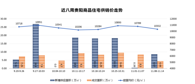 据了解,商品房方面,上周贵阳新增供应9.44万方,环比上涨100%;成交面积11.15万方,环比上涨10.5%;成交均价9445元/㎡,环比下降12.5%;