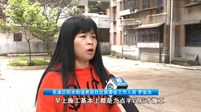花溪区阳光街道贵筑社区居委会工作人员 罗呈杰:早上基本上都是九点半以后才施工,周末基本上就是施工噪音小。虽然噪音有点大,居民还是很理解施工方加班加点的工作状态,期待后期改造出来的环境。