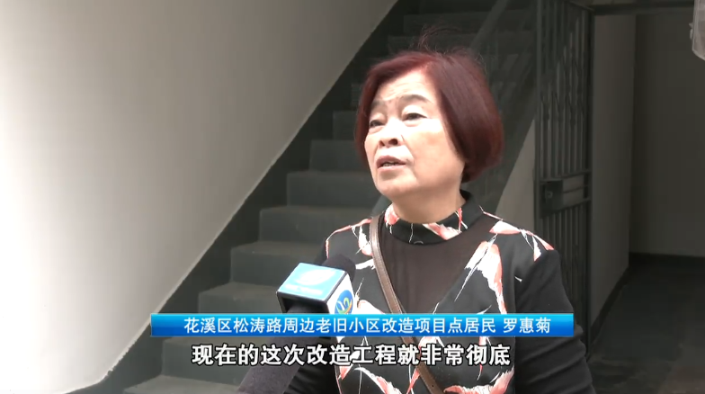 花溪区松涛路周边老旧小区改造项目点居民 罗惠菊:这次改造工程非常彻底,比如楼道上的声控灯、粉刷的墙,以前墙上全是野广告,现在这些工人特别的有人情味,根据我们的需求来耐心改造。
