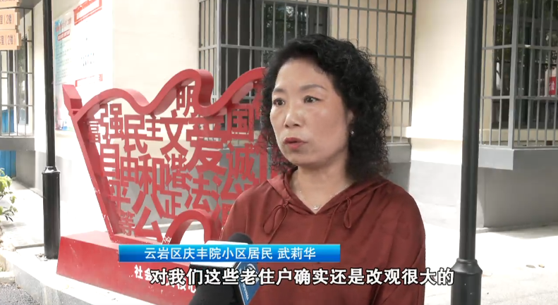 云岩区庆丰院小区居民 武莉华:现在小区改造以后,对老住户确实改观很大,小区里面各家各户的车辆摆放整洁有序,而且老年人下来也有个散步的地方,还增设一些娱乐设施,小区改造后对我们受益最大。