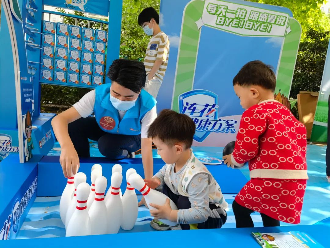 现场设立了知识科普区、游戏区、涂色卡创作区等区域,吸引了不同年龄段的市民们参与互动。知识科普区健康讲师科普感冒和流感的知识,为大家解答中医药如连花清瘟、连花清咳等在防治感冒和流感中的作用;小朋友们在游戏区和涂色卡创作区尽情玩耍,不亦乐乎。