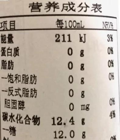 拿甜饮料举例。看它的营养成分表,碳水化合物(糖)含量是12g/100g,如果喝了500ml(约500g),算下来就摄入了60克的糖,而WTO建议:成年人每天添加糖的食用量最好不要超过25克。一瓶饮料喝进去相当容易,但是糖的摄入量可就大大超标了。