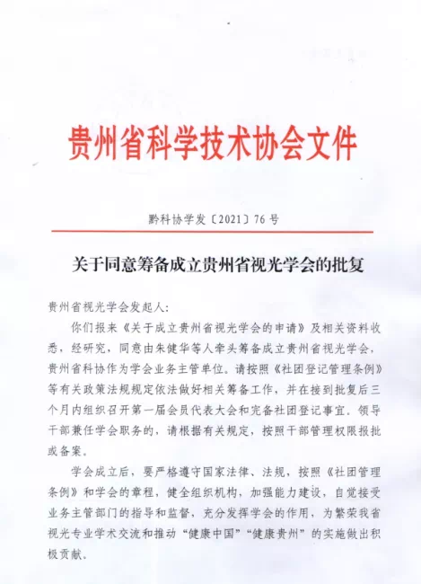 贵州省视光学会是经贵州省民政厅登记批准,2021年6月成立,是由从事眼健康医疗、服务、科研、管理单位和专家、企业家等人员自愿结成的全国性、行业性社会团体,是非盈利性的社会组织。