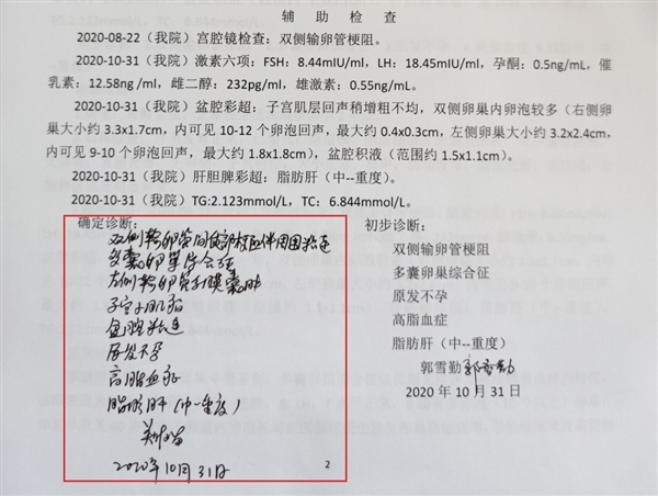 刘玉珍主任在了解了小周的大致情况后,安排她做了系统的检查。检查结果显示小周不仅患有多囊卵巢综合征,还患有双侧输卵管梗阻,而且伴随着子宫小肌瘤、高脂血症、中重度脂肪肝等病症。“刘主任,就是这些病症导致我一直不孕吗?之前也有医生说我是多囊卵巢,也没查出这么多病症啊!我也一直在喝中药调理,但是到现在也怀不上。刘主任,我还能怀得上吗?”查出身上这么多毛病,让小周有点不知所措。