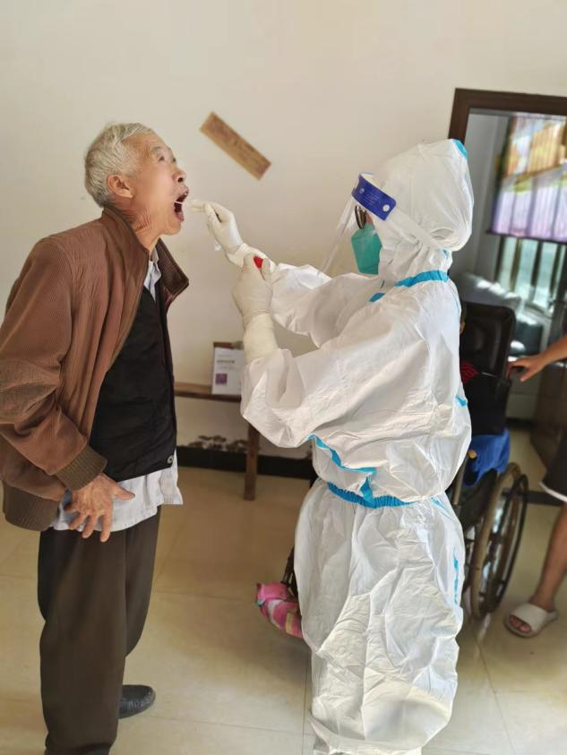 经过短暂的收拾,黔东南州中医院医疗队于当日下午1点到达金沙,放好行李后,欧莉和队友们穿好防护服迅速投入到核酸采样工作中,负责金沙县西洛街道全民核酸采样任务,“虽然西洛街道人员比较分散,到达采样点时间不一,但老百姓依旧有序排队,保持规定距离,采完核酸后还不忘跟我们点头道谢,并有序离开。”欧莉说,让她感动的是当地百姓为减少医护人员上门采样负担,家属将行动不便的老人用轮椅送到采样点进行采样。