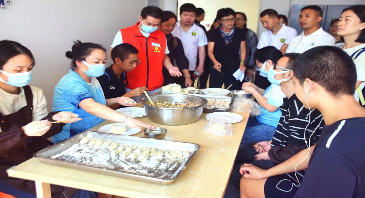 穿过创作区,嘉宾们走进热闹的集体活动室与多功能室。室内,学员们或围坐参与团体游戏,或在康复师指导下进行肢体协调性训练,欢声笑语中,打破了大众对精神康复场景的刻板印象,展现出患者积极融入集体、主动参与康复的鲜活状态,也让“社交康复”这一理念不再停留在理论层面,而是以可感、可触的形式落地生根。而在ADL室(日常生活训练),更显温馨的一幕让嘉宾们倍感触动:康复学员们分工协作,有的擀皮、有的调馅、有的包饺子,彼此交流互动,手中的食材在协作中变成热气腾腾的期待,整个空间充满了家的暖意。这一幕,正是 “日常生活技能训练” 在实际场景中的生动诠释。