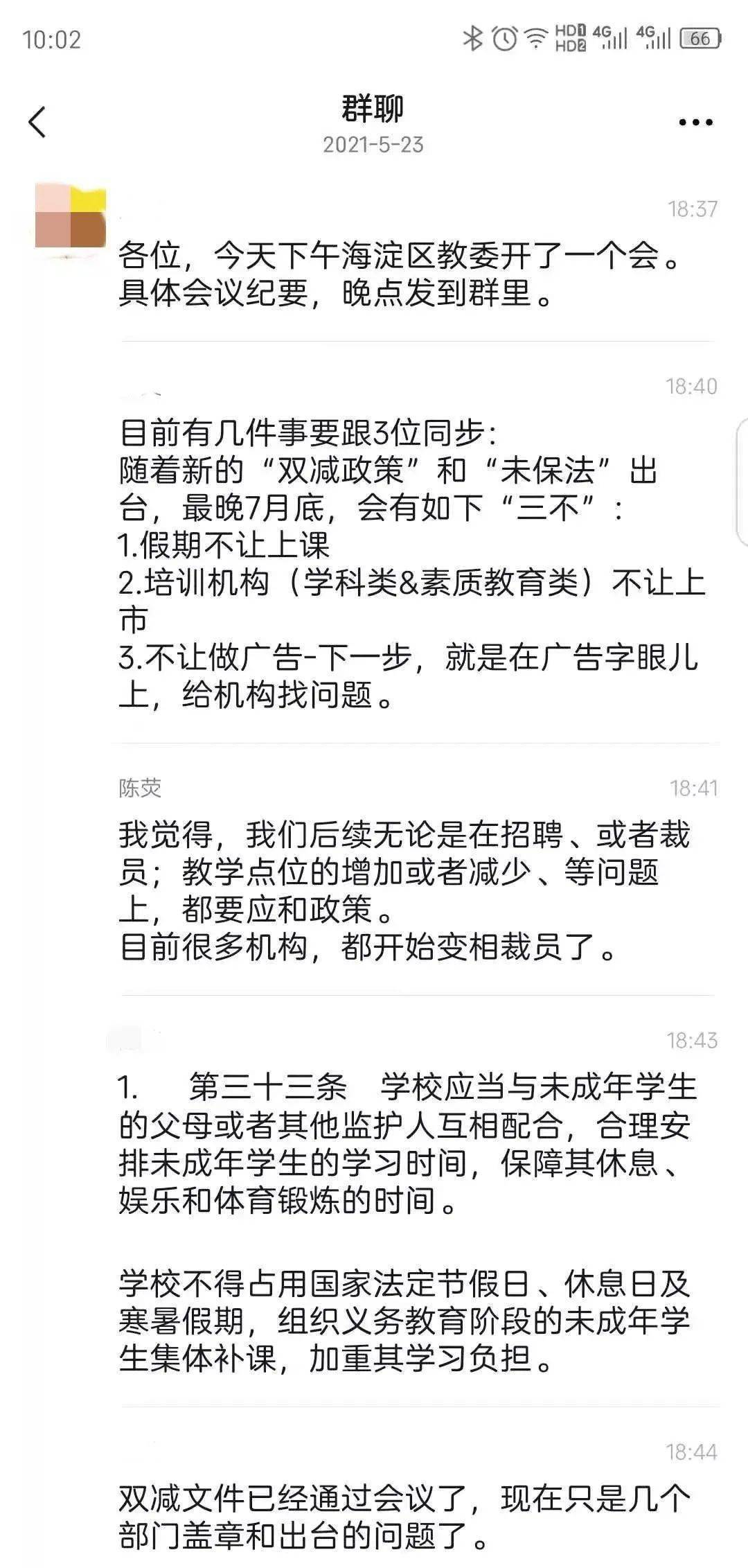 5月19日,海淀区教委发布通报,称已立即核查并叫停“优才教育”准备进行的线上学科考试,要求该机构立即进行自查整改,暂停其已批准恢复线下培训的3个校址的线下培训,并将其违规情况移送市场监管局进一步处理。