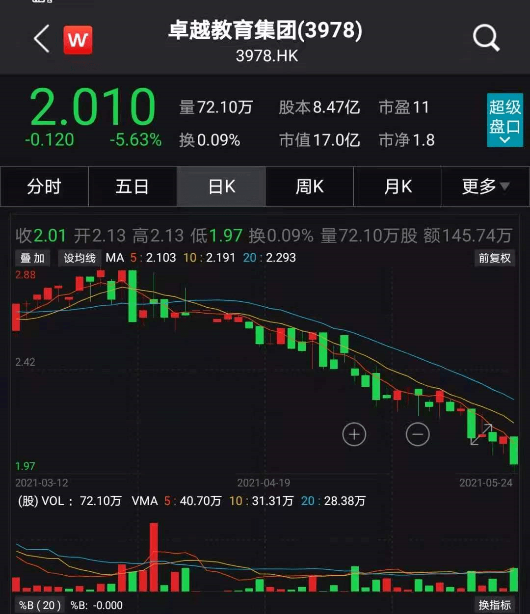 命运的转折点,发生在2月底。教育部表示要规范校外培训机构。行业的整顿之风愈演愈烈,变更了名字的跟谁学(高途)截至目前,已经从1月的高位下跌了87%。