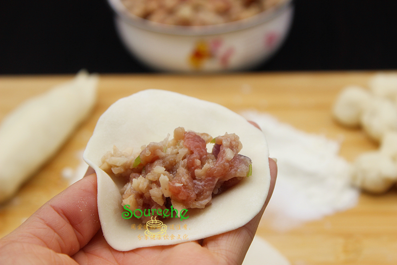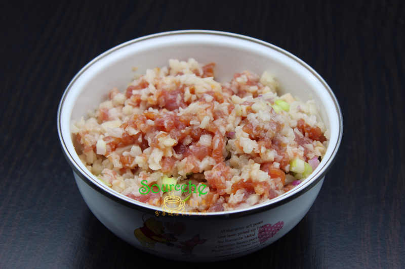 【sourcehe温馨小贴士】1.莲藕馅料要剁碎,否则包出来的饺子就不好处,用绞肉机搅莲藕,有很多莲藕汁,这些莲藕汁不要倒掉,包出来的饺子脆甜鲜嫩多汁。2.莲藕猪肉馅的饺子,用来蒸最好吃。