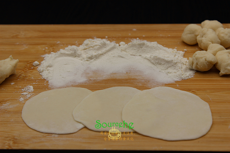 用擀面杖把小面团擀薄,自己做的饺子皮又薄又柔韧,非常好吃。自己擀的饺子比买的好吃多了。