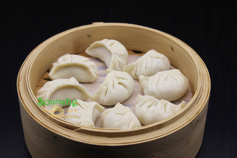 包好的饺子均匀放入蒸笼里,饺子与饺子之间留一点空隙。蒸饺子用竹编的蒸笼,蒸出来的饺子格外的香。