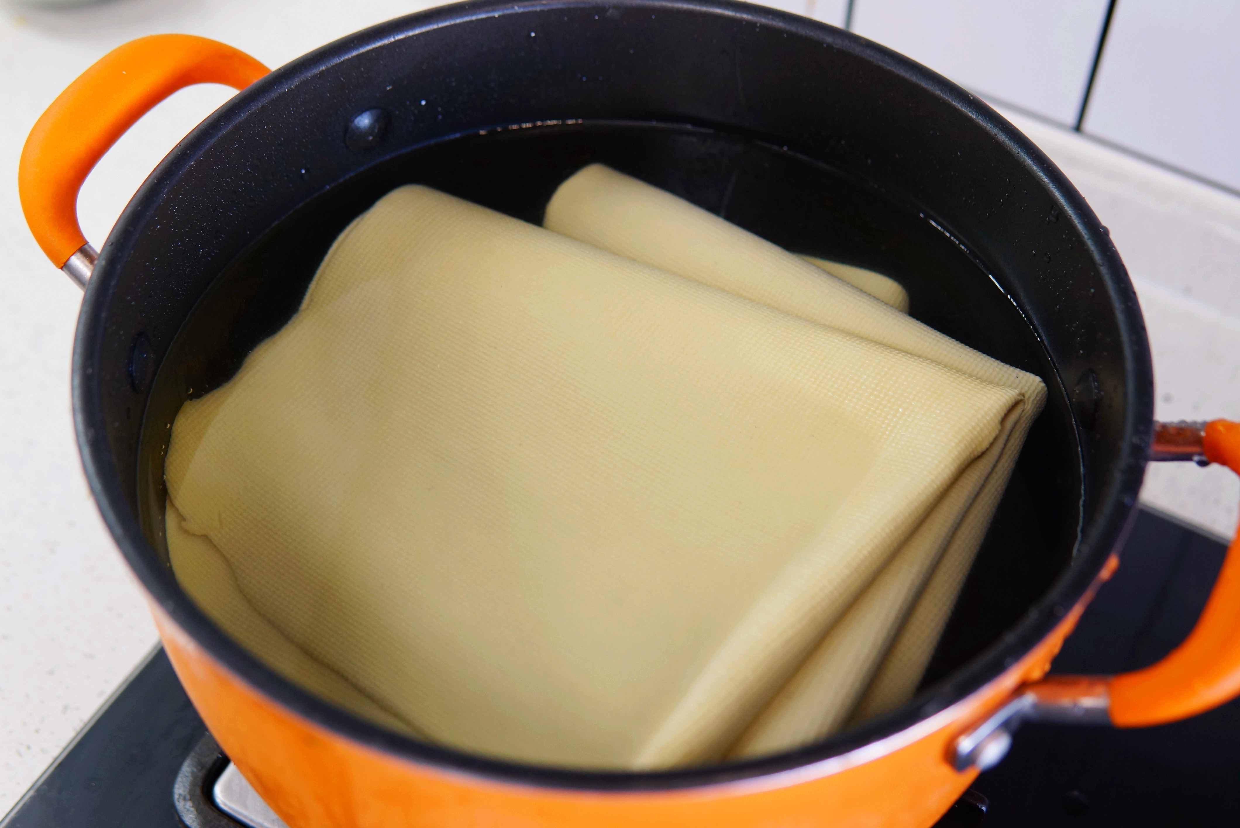 1、千张冲洗干净表面的杂质,锅中加入适量清水,加入1勺食盐,千张下锅焯水1分钟。千张焯盐水后,能够有效去除豆腥味,也更加干净卫生。