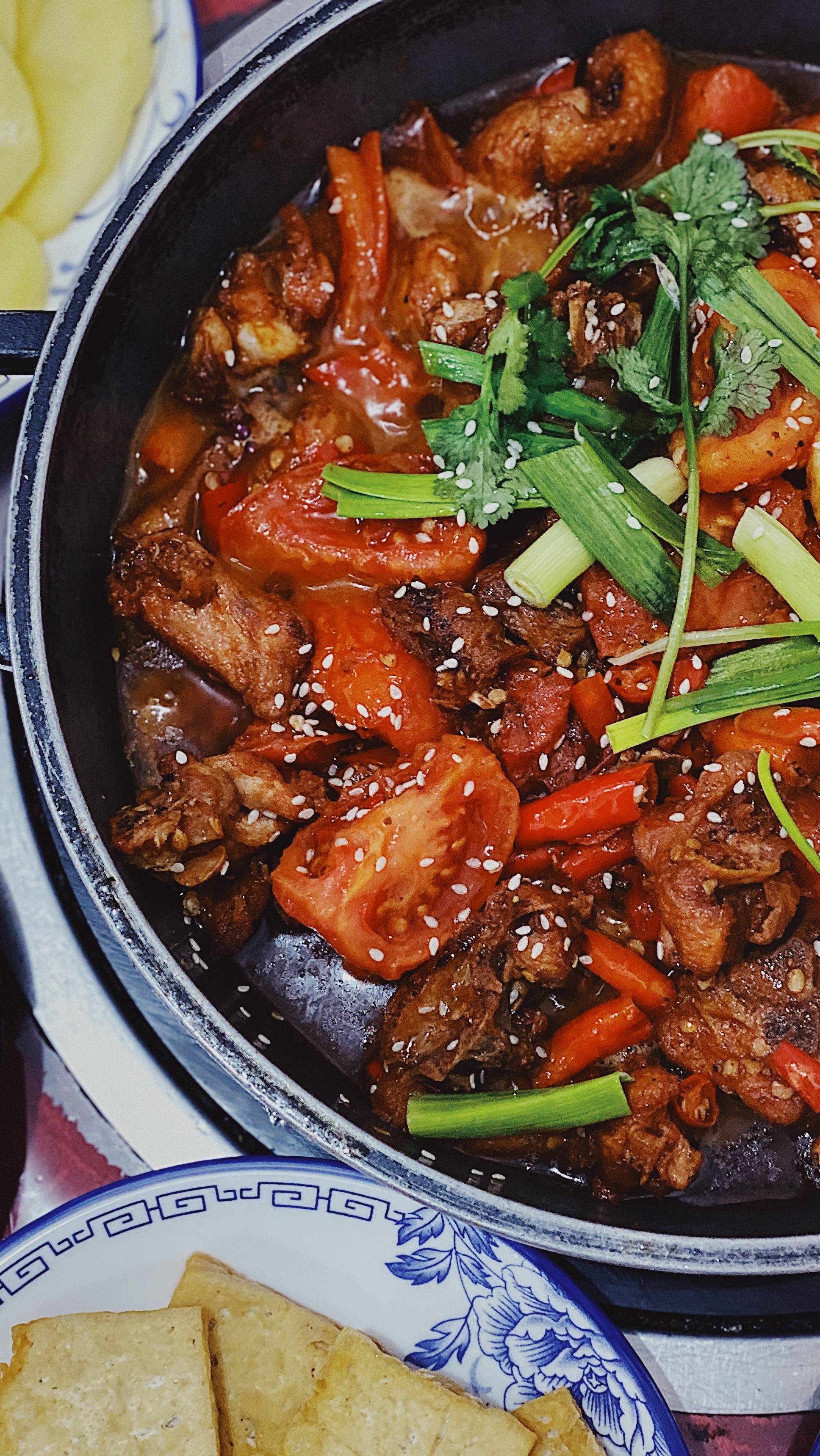 我一直以为「辣子鸡」是贵州独有的特色菜,后面知道四川有辣子鸡,湖南有辣子鸡,甚至最近朋友给我寄了一份来自山东的辣子鸡,所以相比于辣子鸡,我便更想推荐这家店的特色蕃茄鸡了。