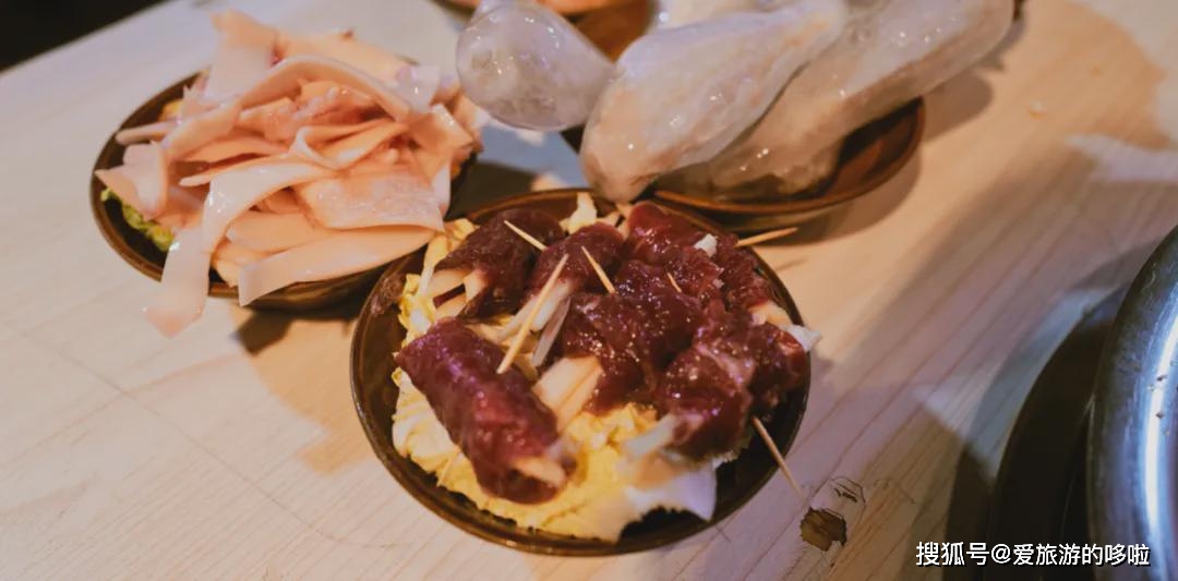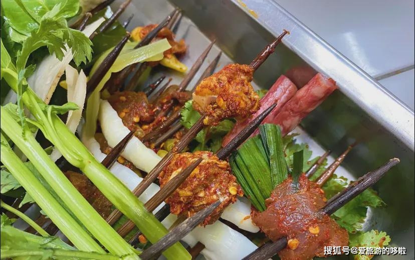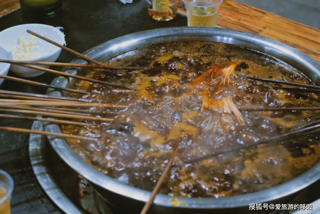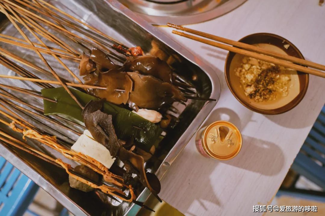 除了盘菜,店里的串品种类算丰富,麻辣牛肉、小腊肠、笋片这些是必点,其他随便拿也不会出错。