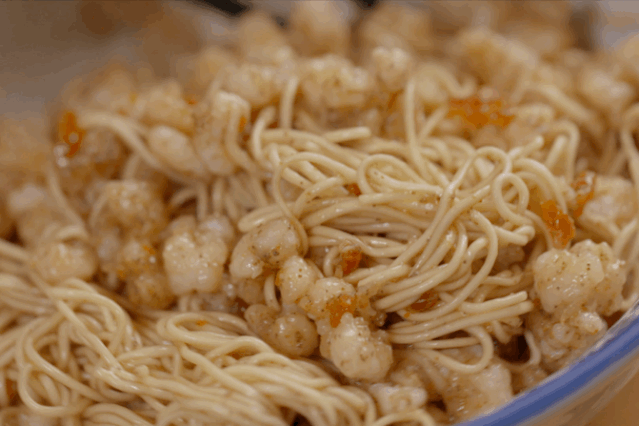 虾脑和虾仁,也是餐桌上的经典食材,精细的三虾浇头,搭配细面和虾籽酱油,巧在心思、贵在人工,可以说是苏式面中的“爱马仕”。