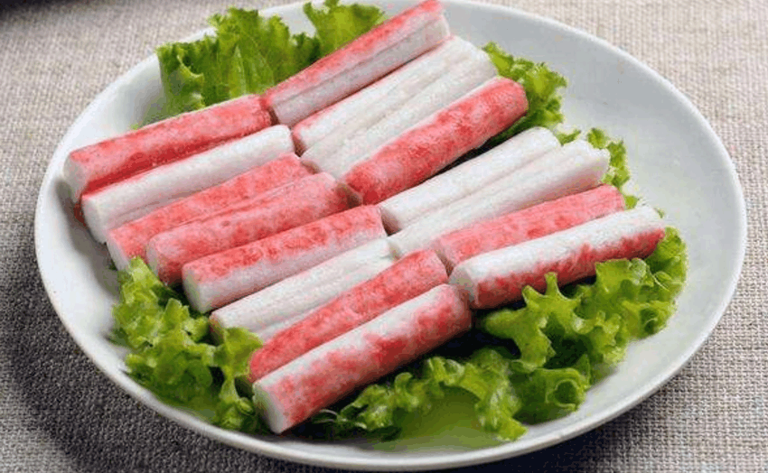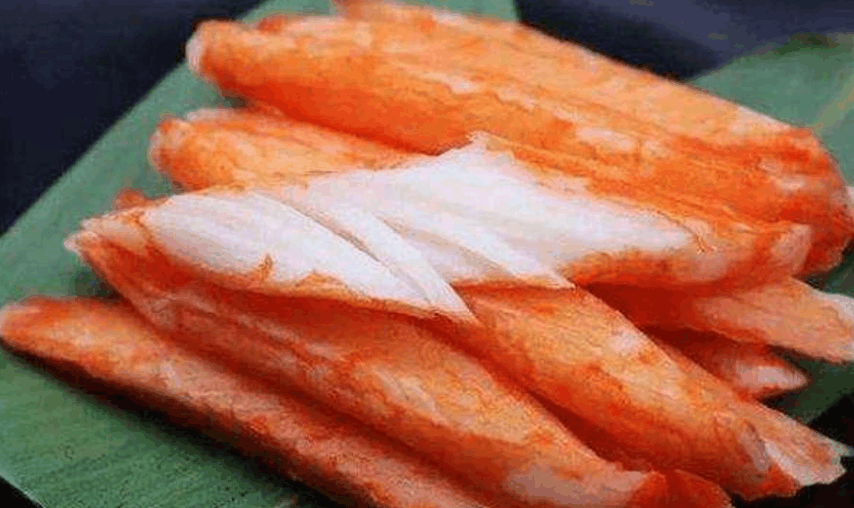 2:蟹柳,很多人在吃麻辣烫或者火锅的时候都非常的喜欢吃的东西,你还以为这个是用螃蟹的肉加入面粉做成的吗?那你就错了,这个就是冷冻的僵尸肉经过人工的处理加工,再加上一些调味品的调制而成的食品,是一个十足的人工合成食品!