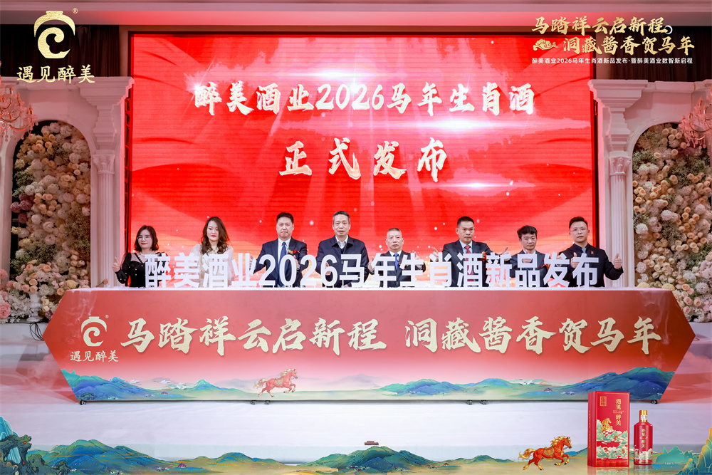 2026年1月6日,以“马踏祥云启新程·洞藏酱香贺马年”为主题的醉美酒业“马年生肖酒新品发布暨数智新启程”活动,在“中国数谷”贵阳隆重举行。本次活动不仅揭晓了以“遇见醉美”为核心的马年生肖纪念酒及系列战略新品,更标志着这家扎根仁怀的酱酒企业正式启动数字化、智能化战略转型,在传承古法酿造的同时,以创新姿态跃入发展新纪元。