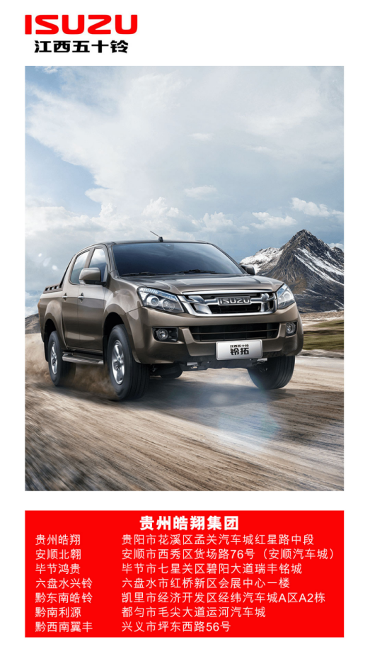 为响应汽车下乡,贵州皓翔下调旗下江西五十铃---铃拓全系车型建议零售价。