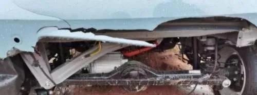 也就是说,防撞钢梁的作用就是将撞击力传导至后方的连接部位上,让纵梁和乘员舱来承受主要力量。如果乘员舱没有变形,车门可以正常打开,驾驶员能够逃出来,就算车辆安全。