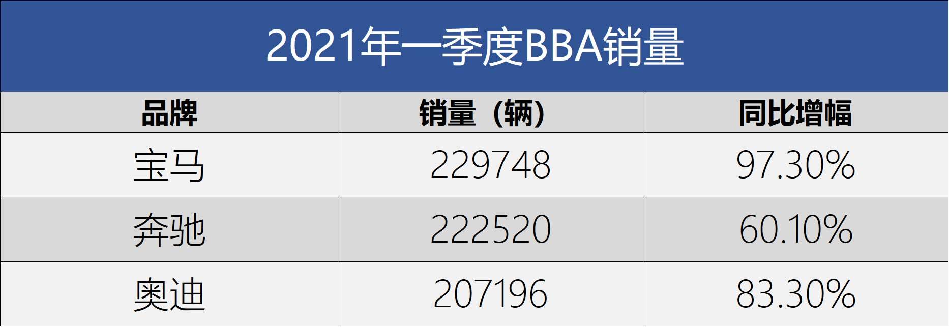 具体到品牌来看,BBA(奔驰、宝马、奥迪)依旧是豪华品牌的领头羊,而其中唯一没有在一季度没有推出新车的宝马以22.97万辆的交付量成为最畅销豪华品牌,而奔驰则以22.25万辆紧随其后,奥迪则以20.71万辆位居第三。