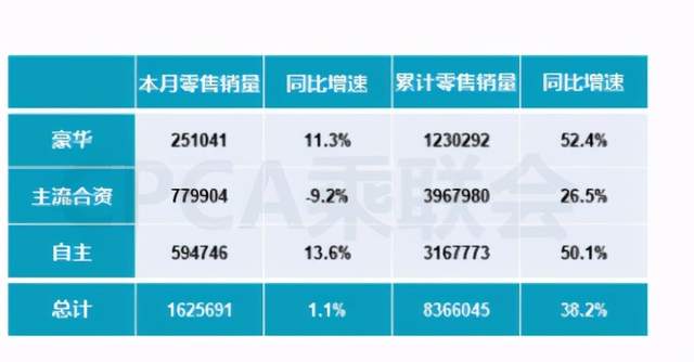 乘联会发布的销量数据显示,5月豪华品牌同比增速52.4%、自主品牌同比增速50.1%,而普通合资品牌的同比增速为26.5%。