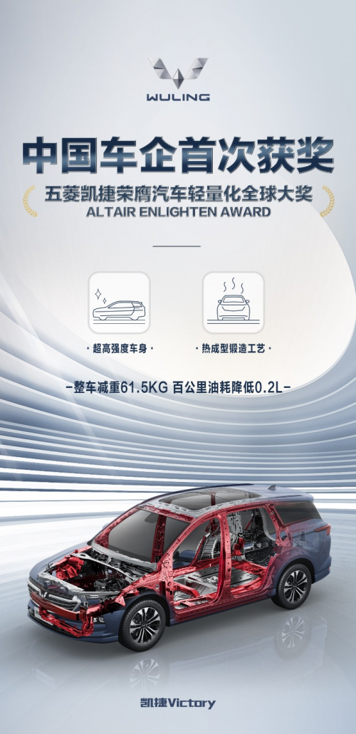中国车企首次获奖!五菱凯捷荣膺汽车轻量化全球大奖 8月4日,五菱凯捷再传捷报,凭借自主拥有、国际领先的新材料、新结构、新工艺,实现整车减重61.5公斤,百公里油耗降低0.2L,以…… 所属分类:汽车资讯 2021年8月9日