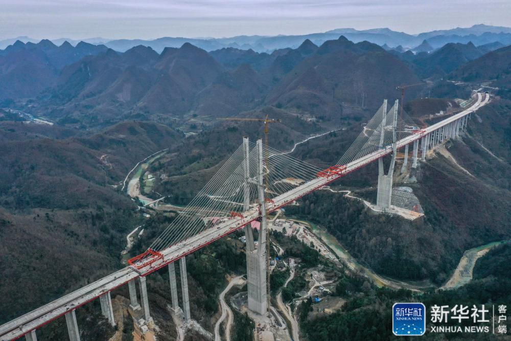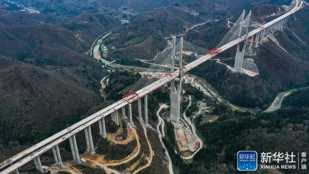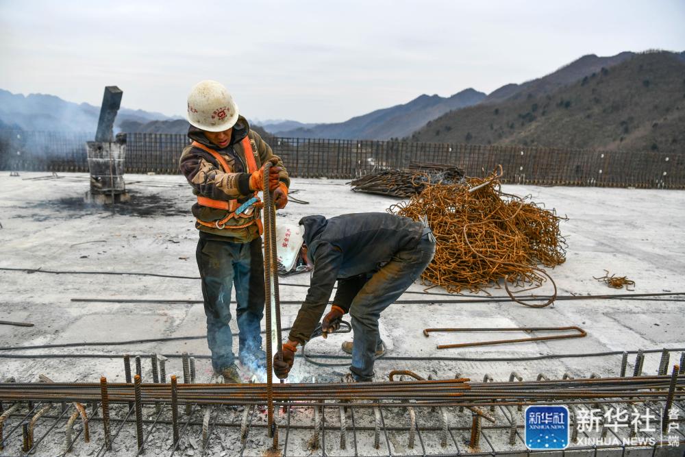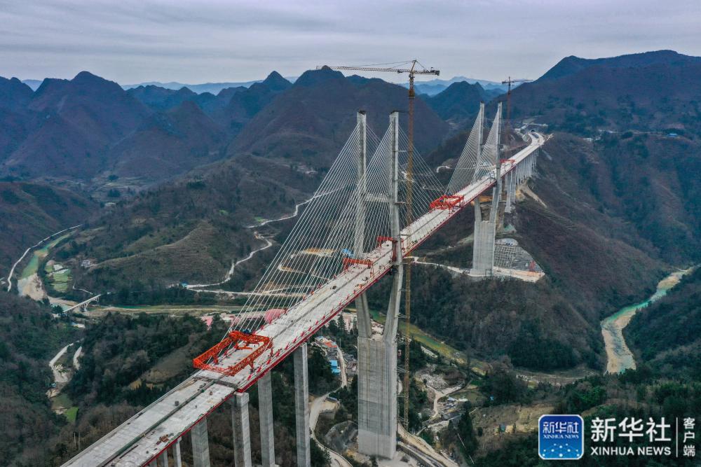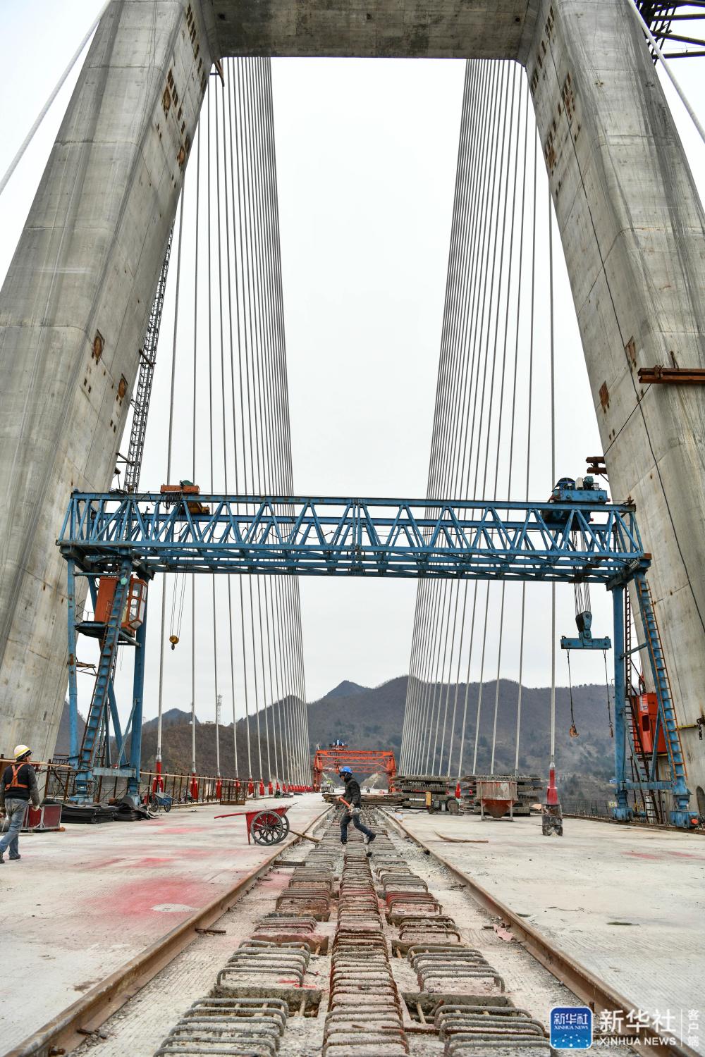 1月10日,工人在贵州都安高速公路云雾大桥现场施工。新华社记者 杨文斌 摄