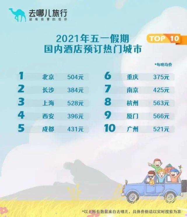 从具体目的地来看,海南儋州市酒店预订量比2019年同期增长11.6倍,位居全国第一;西藏自治区山南市酒店预订增幅为10.4倍。而北京仍是“五一”期间国内酒店预订热度最高的城市。