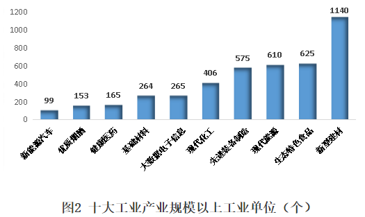 单位数方面,2021年一季度,全省十大工业产业中规模以上工业单位数为3966个,其中年产值10亿元以上的企业数为140个。规模以上工业企业在十大工业产业中行业分布集中度高,其中,新型建材产业1140个、生态特色食品625个、现代能源610个、先进装备制造575个、现代化工406个,五个行业合计占比超过78.0%。