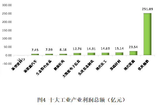 2021年一季度,十大工业产业利润总额中优质烟酒表现突出,实现利润总额251.89亿元,占十大工业产业利润总额的73.7%。另有现代能源、基础材料、现代化工、先进装备制造、大数据电子信息、健康医药、生态特色食品、新能源汽车8个产业合计实现利润总额103.59亿元,占十大工业产业利润总额的30.3%。