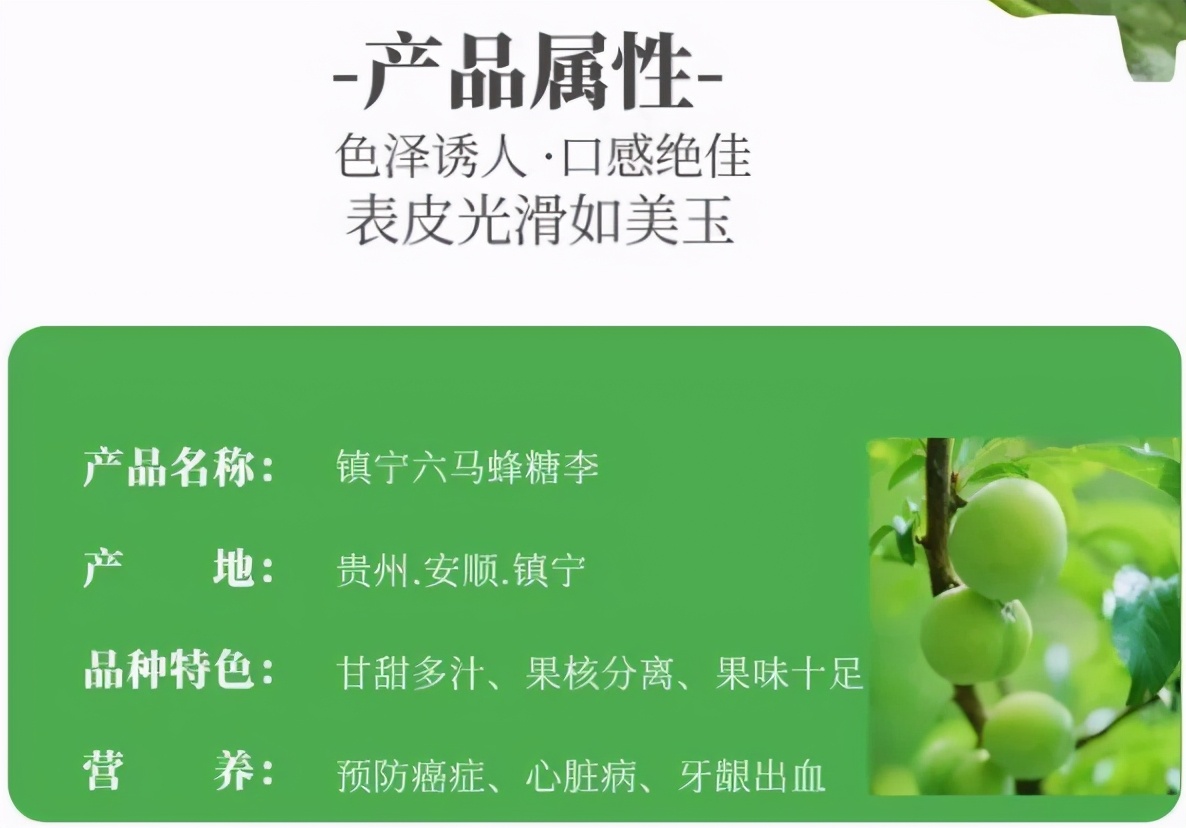 注:蜂糖李成熟期将在6月10日左右。届时将第一时间配送到你的面前!贵阳、安顺城区免费送货上门,外省的可以通过快递送达!现在预订即可享受优惠价!!
