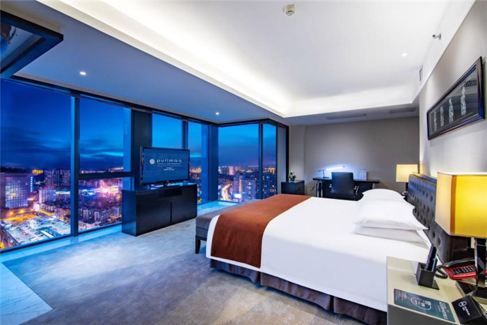酒店共设有381间高雅舒适的客房,典雅舒适的装潢, 客房现代气息浓郁,全落地观景窗让客房拥有最充分的自然光线以及最宽阔的视野,独享林城之韵。