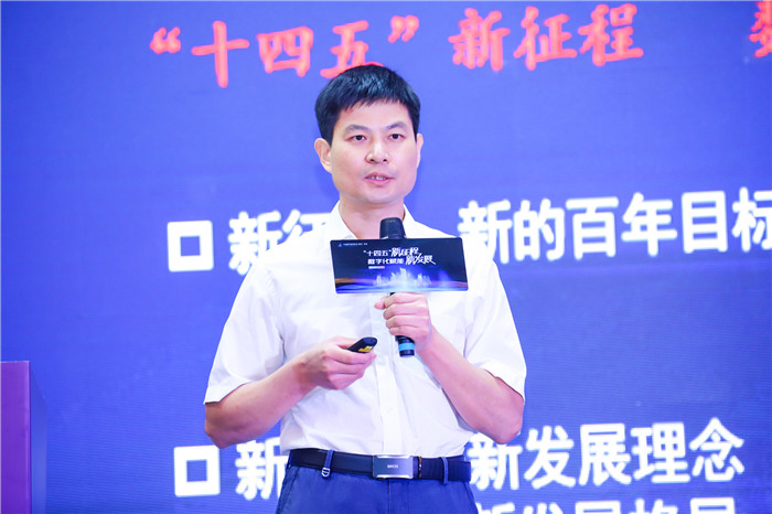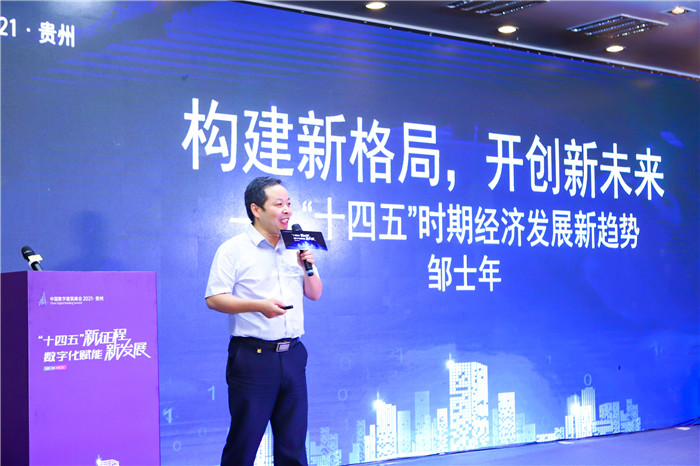 国家信息中心经济预测部新动能(双创)研究室副主任邹士年先生,进行了以 “构建新格局,开创新未来 ——”十四五“时期经济发展新趋势”为主题的分享,就“十四五”时期国内环境、国际环境以及经济发展新趋势,进行了详细分析,邹主任认为新时期要立足新发展阶段,深入贯彻新发展理念,加快构建新发展格局。