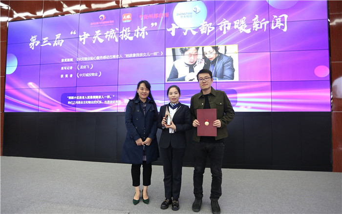一座座晶莹剔透的奖杯,铭刻着这座城市的精神与风尚。10月14日下午,由贵州都市报、天眼新闻和中天城投联合打造的第三届“中天城投杯”十大都市暖新闻颁奖典礼在天眼传媒办公大楼9楼举行,众人期待已久的暖心大奖在领导和嘉宾的见证下一一揭晓。