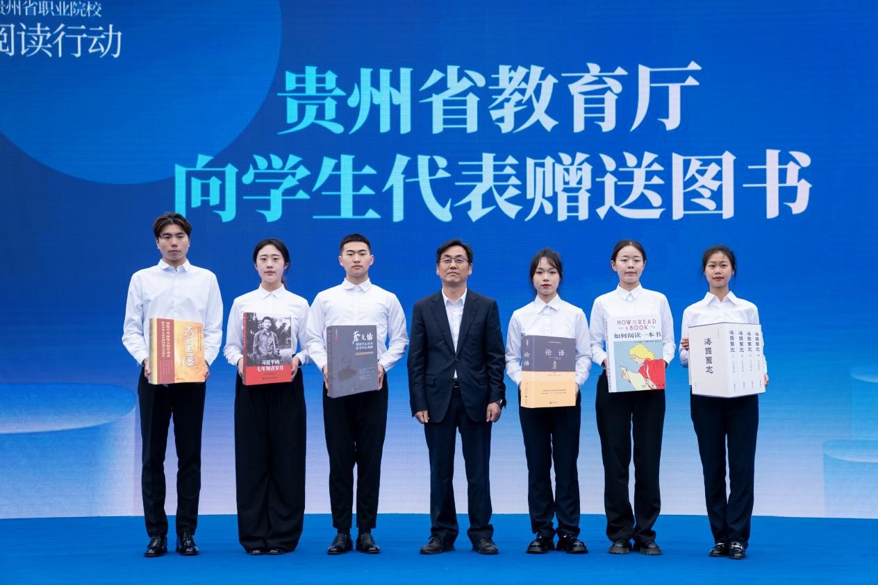 随后,杨天仪代表贵州省教育厅向学生代表赠送图书。