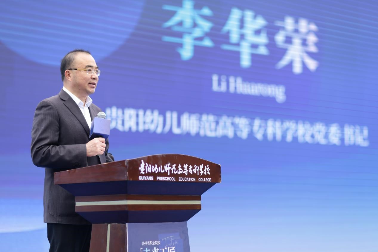 李华荣在致辞中介绍了贵阳幼儿师范高等专科学校大力打造“环境美、文化美、育人美”的“三美大阅读”环境。他希望学生养成阅读习惯,快乐阅读、健康成长、矢志成才、报效家国;希望大家都参与到阅读中来,形成爱读书、读好书、善读书的浓厚氛围,把书本上学到的东西转化为解决实际问题的能力,做到知行合一、以知促行,为奋进新征程、建功新时代提供智力支撑、注入精神力量。