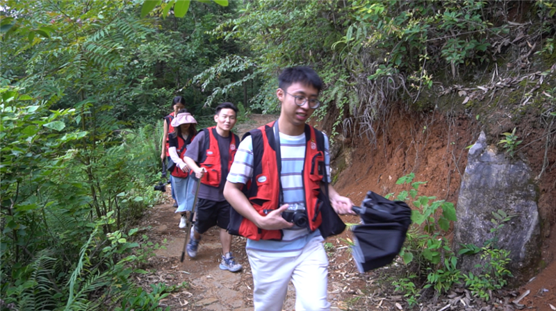 景区的山林中,山路蜿蜒泥泞,尽管如此,团队成员毫无退缩之意,始终保持一腔热情,在艰苦环境中磨练坚韧意志。