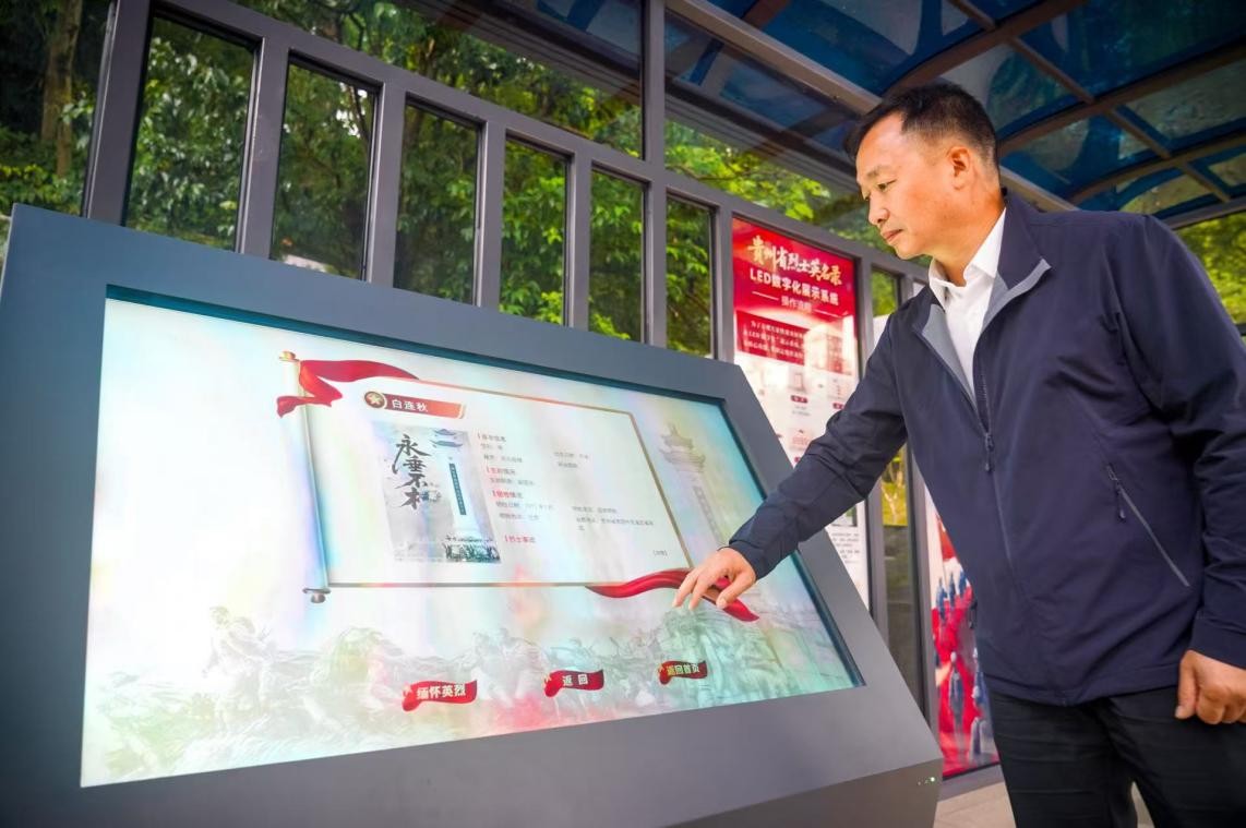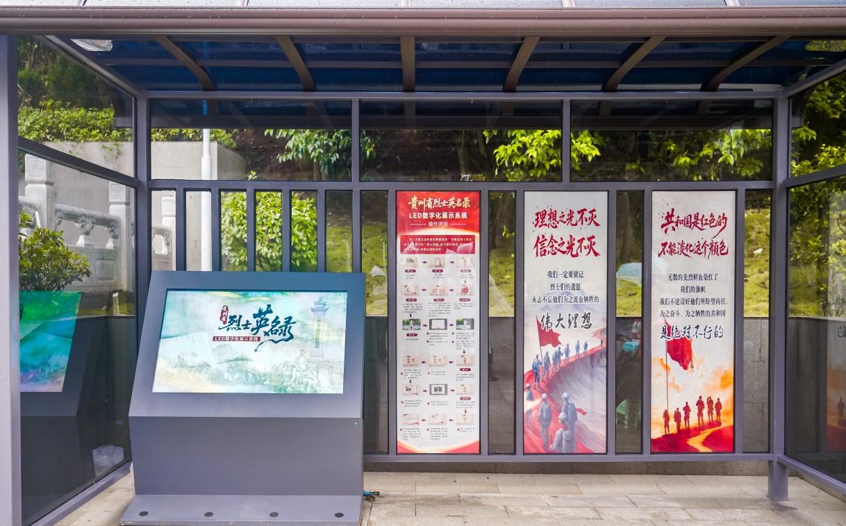 黔灵山公园的解放贵州革命烈士纪念碑旁,烈士英名录LED数字化展示系统已安装完成。公众只需轻点屏幕,按照提示操作,输入烈士姓名,即可查询到烈士相关信息。还可通过“烈士名录”“弘扬宣传”“权益维护”三大模块,了解到全省各地的红色纪念设施和缅怀英烈相关活动情况,有效拓宽了缅怀英烈线上渠道,让英烈精神在新时代焕发新生。