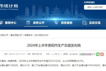 今年上半年贵阳市GDP达2503.61亿元,同比增长6.0% 根据市(州)生产总值统一核算结果,2024年上半年贵阳市生产总值2503.61亿元,比上年同期增长6.0%。 分产业看,第一产业增加…… 所属分类:社会新闻 2024年7月30日