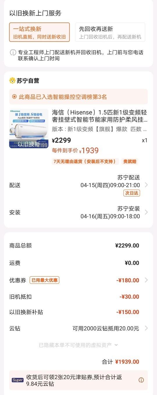 继3月30日官宣焕新升级后,4月14日,苏宁易购最新版以旧换新正式上线。据页面显示,一键“立即换新”,即可进行差价付款和一站式……