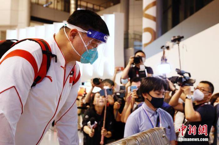 资料图:7月19日,参加东京奥运会的中国女篮运动员与教练团队抵达东京成田机场。图为姚明抵达成田机场。 中新社记者 韩海丹 摄