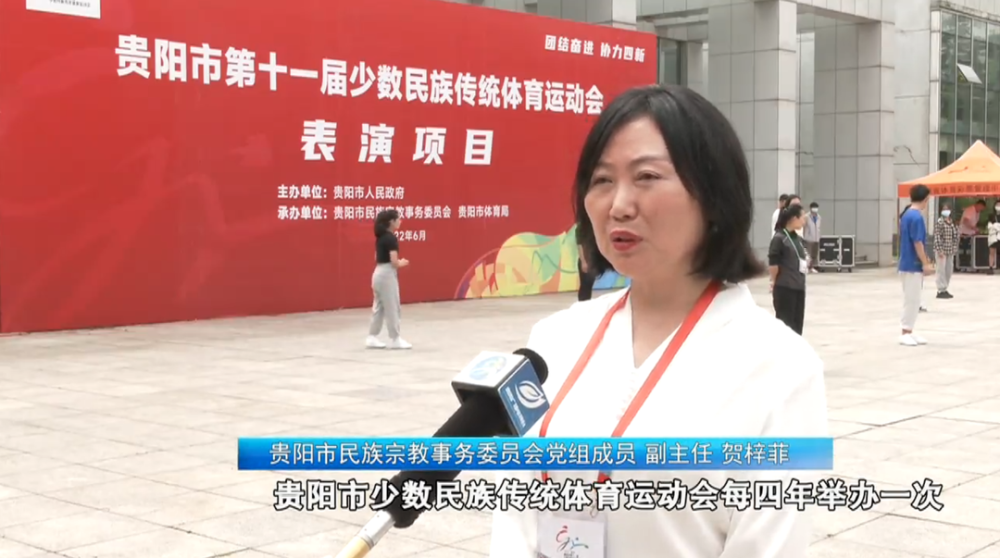 贵阳市民族宗教事务委员会党组成员、副主任 贺梓菲:贵阳市少数民族传统体育运动会每四年举办一次,本届少数民族传统体育运动会以“团结奋进 协力四新”为主题,以弘扬传承中华优秀体育文化为纽带,体现人文之美、和谐之美、运动之美,为“强省会”凝聚磅礴力量,让多姿多彩的中华优秀传统文化在筑城绽放。