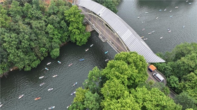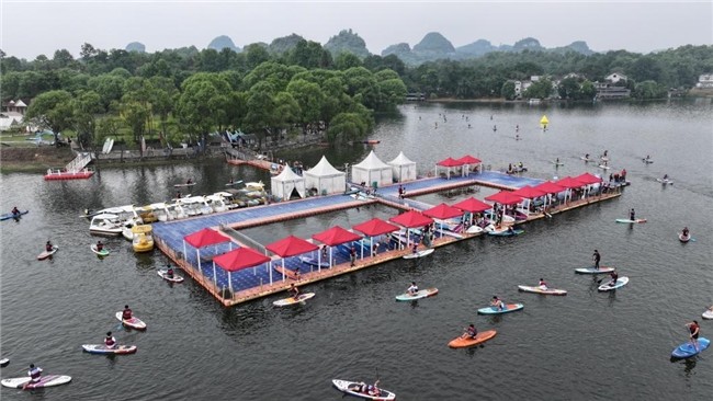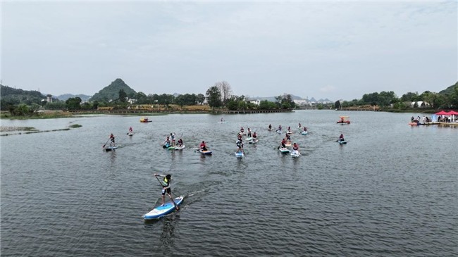 4月24至25日,“活力三岔河·桨板竞碧波”2026贵州贞丰桨板竞速公开赛在国家4A级旅游景区——贞丰县三岔河景区成功举办。本次比赛汇集了来自广西、广东、上海、河南等省内外的230余名桨板运动爱好者。三岔湖水域开阔平缓,四周峰峦叠翠、碧水环绕,得天独厚的自然条件为选手和观众带来了一场沉浸式的山水户外竞赛体验。