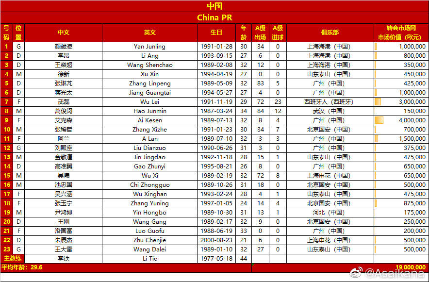 国足战日本23人大名单:徐新朱辰杰入选 韦世豪于大宝落选
