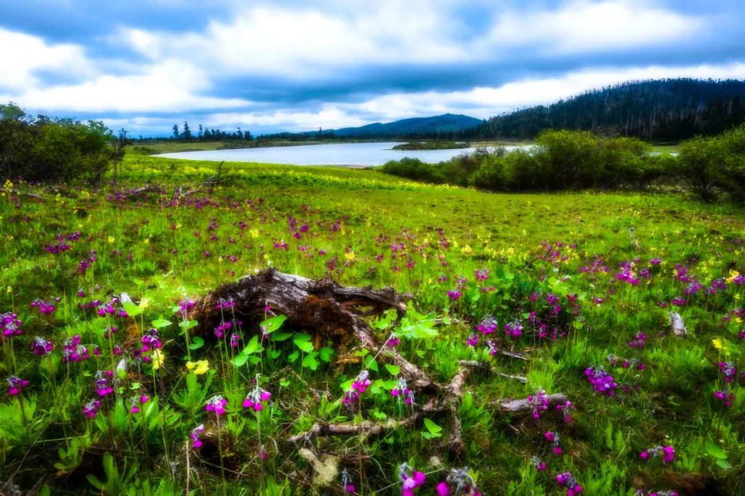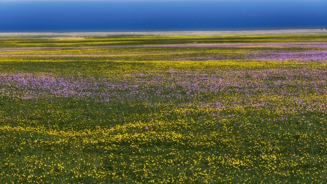 五颜六色的鲜花盛开在湖畔、高山、草地,绘出一幅又一幅的绝美画卷。